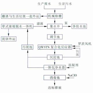(6)一體化凈水器出水自流入消毒池,經(jīng)投加次氯酸鈉消毒后排放。